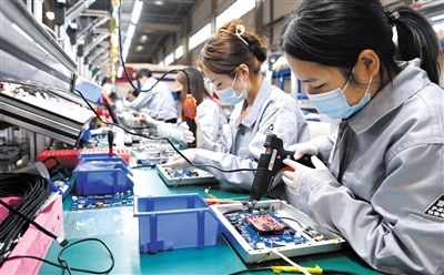▼ 4月14日,西安天隆科技核酸检测仪器生产线的工作人员在进行产品装配。