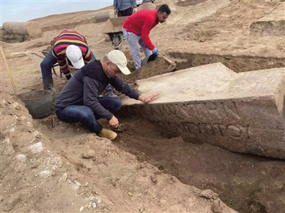 这张未标明拍摄时间的照片显示,考古人员在埃及北西奈省的遗址发掘现场工作。 本版文图据新华社