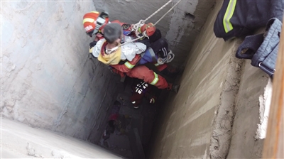 了解情况后,两名救援人员穿戴好救生吊带深入井下施救。