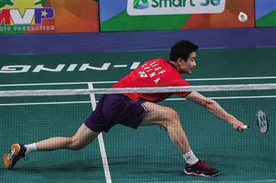 27日,在菲律宾马尼拉举行的2022年亚洲羽毛球锦标赛男单首轮比赛中,中国选手李诗沣以2∶1战胜印度选手拉克什亚·森,晋级下一轮。图为李诗沣回球。