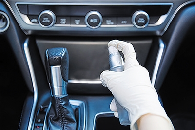 一般来说,常见的消毒产品有酒精、次氯酸、84消毒液等。“对于汽车来说,车内消毒不宜大面积直接喷洒酒精。酒精属于易燃易爆物,由于车内是封闭空间,空气中浓度过高的酒精一旦遇到静电和明火,容易引起火灾或爆炸。尤其很多高档车辆都装有真皮座椅和木质内饰,酒精会造成内饰掉色、起皮、发白,一旦受损很难修复。过氧乙醇对车身和车内的金属部件会有腐蚀性。84消毒液如果稀释不当,会对车身漆面产生腐蚀效果。因此,车内消毒应尽量选择使用专用汽车消毒液,不仅对人体无刺激,而且使用效果良好。将汽车专用消毒液雾化喷洒在车内,可快速分解甲醛、苯酚类有害物质,消灭附着病菌的同时还能去除各种异味,降低PM2.5含量。”王师傅还建议,车内消毒后,应适当开窗通风,打开空调外循环系统。