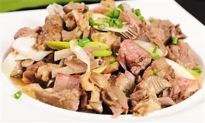 盐煎羊肉的做法相对简单,但想做好不容易。先将选好的肉用清水洗净、切块,下入清水锅中,大火煮5分钟后捞出;换清水烧开后再放入羊肉,加食盐和花椒煮制。肉煮熟后,再用盐和大葱翻炒,其他调料一律不用,以保持羊肉的原汁原味。如此烹制成功的盐煎羊肉,香气四溢、鲜美爽口、肥而不腻。而且,大同人在做盐煎羊肉时一直都有“半只羊一碗水,一只羊半碗水”的说法。这是因为羊肉鲜嫩,在煮制过程中,其自身的水分和油分会浸出来一起煮肉,肉多反而用的水更少一些。 (孟维鹏)