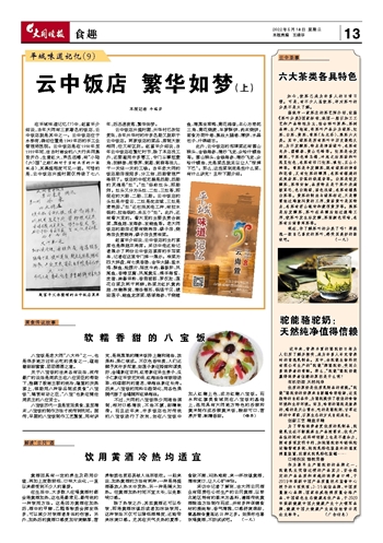 采访中记者了解到,由大同云冈酒业有限责任公司生产的云冈黄酒,以晋北地区特有的黍米为基料,遵循传统黄酒酿造方法制作而成,并有多种保健食材的提纯物,香气清雅,口感舒爽绵甜,氨基酸含量高达21种之多。如果你也喜欢喝黄酒,不妨试试吧。 (一凡)