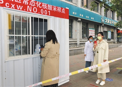 图为市民在柳泉南街的一处便民采样点进行核酸检测。