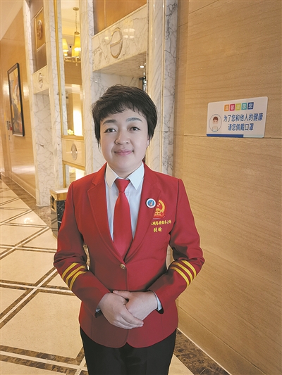采访中张瑜告诉记者,刚入职的时候,首先就要学习“餐饮服务六大技能”,摆台、托盘、斟酒、口布折花、上菜、分菜,每一样都要学。其中,最难的就是托盘。练习的时候,要用盛汤的大瓷盆装满水来练习,而且手臂要呈90°角,双脚站成小V字形。最终,盘子托稳了,腿也因站立时间过长落下了静脉曲张的毛病。张瑜说,可能也是因为自己不服输的劲头,再加上为人随和,刚入职一年,她便被评为优秀服务员。虽然不是什么很大的荣耀,但是对于她来说这是一份认可。不只是领导的认可,也是客人对她服务的认可。2008年,因为业务能力出色,张瑜被领导安排开始负责一些重要活动的服务工作。张瑜说,不管面对的客人是谁,她始终保持着一颗平常心,认真对待每一位客人。后来因为负责的工作越来越多,也练就了她在服务上面面俱到的职业素养。