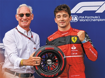 28日,2022赛季F1世界锦标赛摩纳哥大奖赛排位赛在蒙特卡洛赛道举行。法拉利车队摩纳哥车手勒克莱尔(右)夺得杆位。