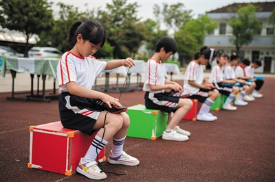 5月30日,河洑镇汇华聚宝小学的学生参加系鞋带比赛。