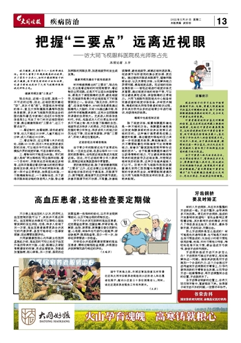 陈占先说,近视一旦出现,就是一个不可逆的过程,因此,近视防控关键在“防”,其次才是“控”。我国视光学领域的泰斗、复旦大学附属眼耳鼻喉科医院终身教授、多次来飞视眼科医院坐诊的国内眼科著名专家褚仁远在《中华医学信息报》上刊发了专门针对近视防控的文章,提出健康用眼的“三要点”,这三个要点如下:
