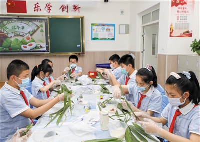 在端午节来临之际,市实验小学开展了包粽子、编端午绳等活动,旨在培养同学们的动手能力,进一步了解和感受中华传统文化的魅力,提升自身文化素养。