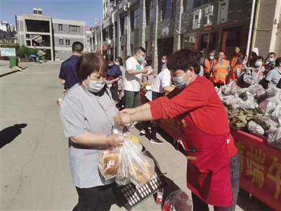 是日上午,爱心企业的工作人员把粽子送到环卫工人手中,并送上节日的祝福。“您辛苦了,祝您身体健康!”“快过端午节了,希望您开心幸福!”……一声声问候,温暖了坚守在岗位上的环卫工人。