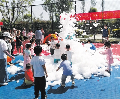 6月1日上午, 碧水云天·新河湾小区开展了“梦幻童年放飞童心”“六一”儿童节活动。爸爸妈妈和孩子们一起做游戏,在开发孩子智力的同时,也提高了他们的动手能力。