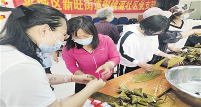 本报讯 (记者 杨翠叶) 又是一年端午到,又是一季粽米香。1日,平城区新旺街道御锦源社区协同平城区文化和旅游局、平城区文化馆共同开展了“非遗文化惠民精品课堂进社区——粽情端午包粽子”活动,将快乐幸福传递给每一位居民。