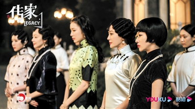 《传家》中精致的“服化道”也引发了不少讨论。易家三姐妹有不少旗袍造型,导演王威介绍,团队参考了很多民国时期的老照片,走访了苏州的旗袍博物馆,还拜访了一些民间旗袍收藏者,直观感受那个年代的风格。“民国时期的服装,既有古典美,又有现代主义的东西融入。我们整个造型团队一直努力用‘服化道’传递当年的时尚到底是什么样。三姐妹的造型都以旗袍为主,我们根据她们的性格特质来做出区分。易钟灵的造型比较传统,以背心加长衫的结构体现她的温婉。易钟玉则相反,她孤僻骄傲,又是从新加坡回来的,着装比较西化,因此我们采用了改良旗袍的方式,融入了当时非常流行的现代艺术风格,做出了华丽而有性格的服装。易钟秀则是个天真活泼的时尚达人,她的衣服就是小女孩很喜欢的、流行指数爆棚的感觉。”王威说,“虽然都是旗袍,但这部剧的服装造型不会单一。《传家》整个故事横跨三十年,我们有足够的空间去表现旗袍的演变过程。上世纪20年代,旗袍刚开始改良,流行钟形袖、大袖、直身摆、珠绣等元素,非常精致,跟传统旗袍不一样;从上世纪30年代开始,旗袍由长变短;上世纪40年代旗袍则变得及膝和更加修身。”