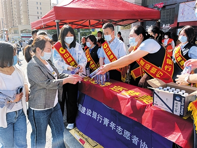 此外,高考期间,建行大同分行团委还在各考点外设立了助考服务站,免费为广大考生和家长提供矿泉水、口罩、消毒洗手液等物品。青年志愿者一边配合其他部门维持考场周边秩序,一边为考生和陪考家长做一些力所能及的事,充分诠释了“奉献、友爱、互助、进步”的志愿精神。
