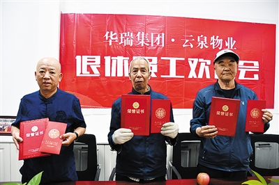 欢送会上,云泉物业公司工会主席李永丽代表云泉物业对8位退休员工多年来的努力工作给予了充分肯定,对他们兢兢业业、任劳任怨、无私付出表示由衷感谢和深深的敬意。希望他们保重好身体,有时间常回来看看,并对他们表达了深切的祝福。欢送会上,还为退休员工颁发了光荣退休证书和企业荣誉金。
