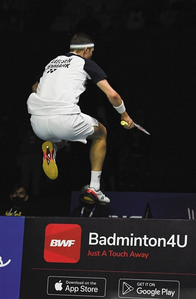 6月19日,在男单决赛中,丹麦选手安赛龙以2∶0战胜中国选手赵俊鹏,夺得冠军。