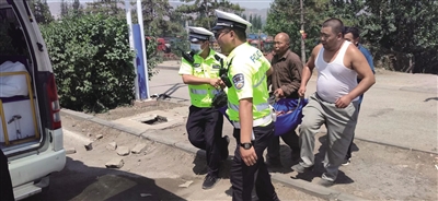 本报讯 (记者 刘剑) 18日上午,市公安局交警支队恒安大队巡逻民警在时庄村附近巡逻时,一男子急匆匆地跑向他们,称他的三姨晕倒在时庄桥头,请求帮助。