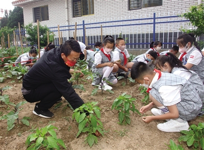 为了让学生养成从小热爱劳动、善于观察的良好习惯,培养学生全面发展,今年我市各学校结合实际开展丰富多彩的劳动课程。 平城区十里店学校在校园里为学生开辟了“学生种植园区”,老师定期组织学生对园里蔬菜进行除草、浇水等日常养护,让学生体验耕耘的艰辛和收获的不易。