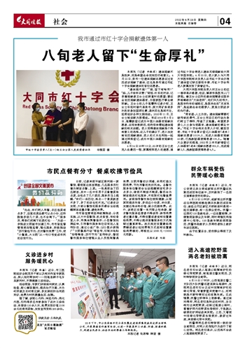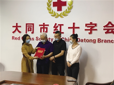 6月16日23时13分,82岁的王女士走完人生最后一程,家属按照老人的遗愿,通过市红十字会将老人遗体无偿捐献给大同大学医学院。6月22日,老人家人与大同大学医学院相关负责人在市红十字会办理了遗体登记移交接收手续,市红十字会向老人家属发放了荣誉证书。