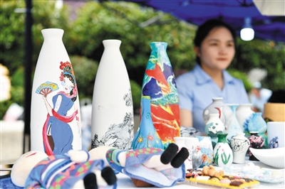 6月26日,贵州省龙里县中等职业学校的老师在展示学生的手工作品。
