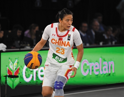 6月25日,在比利时安特卫普举行的2022国际篮联三人篮球世界杯女子组四分之一决赛中,中国队以21∶13战胜比利时队,晋级四强。图为中国队球员王丽丽带球突破。