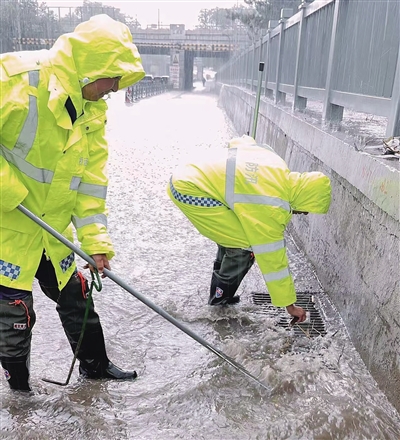 6月28日11时,我市局部又开始下雨,刚刚还在休整的防汛人员闻讯而动,再次奔赴各个积水点位和值守地点。15时许,就在大家埋头奋战时,又收到了城市内涝气象风险蓝色预警;16时许,大雨倾盆,而此时工作人员已连续在雨中坚守超过5个小时。“前方积水严重,请掉头绕行,注意安全!”“请靠左侧行驶,右侧积水较多!”……在各积水点,市政工人不顾瓢泼大雨和雨水浸泡,按照分工冒雨“逆行”——有的提醒过往车辆注意安全;有的手持撬棍打通窨井盖;有的帮涉水熄火车辆推行至安全地带……17时30分,雨势渐小,雨量平稳,但防汛人员仍然坚守岗位,坚守执勤点,冒雨帮助来往抛锚车辆。18时23分,雨终于停了。看到“拥军路泵站桥涵,通行正常,天气晴!”的信息出现在工作群内,大家终于松了一口气。 本报记者 尚铁军