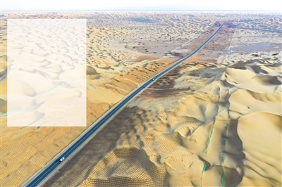塔克拉玛干沙漠是世界第二大流动沙漠,在风的作用下,沙丘会“流动”。这意味着刚修好的路面,如果不做任何措施,仅需一场大风路面就会被掩埋。