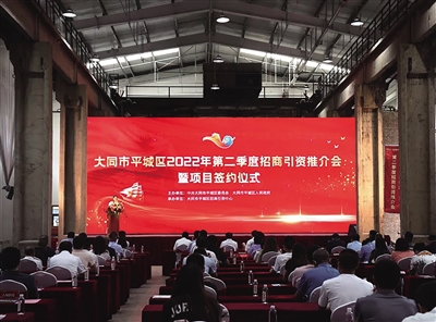 本报讯 (记者 孙露) 近日,平城区2022年第二季度招商引资推介会暨项目签约仪式举行。现场集中签约项目9个,总投资额达45.68亿元。