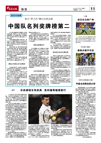 2022布达佩斯游泳世锦赛3日结束全部比赛,中国队以18金2银8铜名列奖牌榜第二位,金牌数与第一名美国队持平,其中跳水“梦之队”横扫全部13个项目金牌。