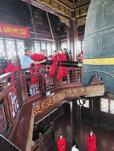 本报讯 (记者 崔莉英) 7日是农历小暑,“信守时节· 钟启吉祥”二十四节气文化系列活动暨大同晨钟启动仪式在大同古城钟楼前举行。当日清晨,人们在观看了“时来运转,二十四节气巡礼”,聆听了“小暑”时节祈福文后,来自各行各业的市民代表走上钟楼,敲响“大同晨钟”为自已祈福。据了解,从7日起,大同晨钟开始常态化运营,市民和游客可预约走上钟楼撞钟祈福。