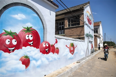 这是山西省壶关县店上镇林青庄村的西红柿主题墙绘(7月7日摄)。