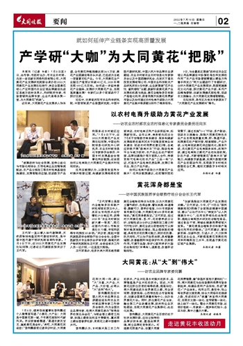 本报讯 (记者 孙露) 7月8日至9日,由市委、市政府主办,市农业农村局、北京一亩田新农网络科技有限公司、大同黄花产业发展研究院联合承办的2022大同黄花产业发展论坛举行,来自全国黄花核心产区和国内农业区域品牌建设先进区县地方政府负责人、科研院所专家、市场营销和品牌专家、企业代表等齐聚一堂,为大同黄花“把脉”。