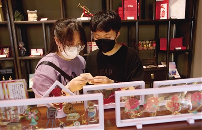 12日,记者在大同红色记忆馆看到,许多参观者在文创产品区域挑选自己喜欢的红色文创产品。“近日,前来参观红色记忆馆的人络绎不绝。”大同红色记忆馆工作人员表示,大家在参观文物与展品的同时,也十分关注文创产品,特别是红色文创产品。