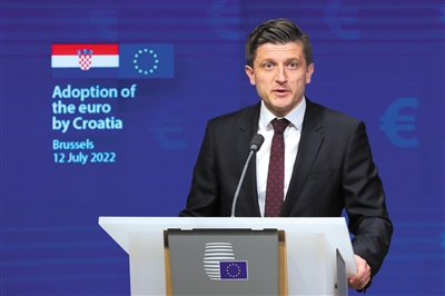 7月12日,克罗地亚副总理兼财政部长兹德拉夫科·马里奇在比利时布鲁塞尔出席克罗地亚加入欧元区法律文件签署仪式。