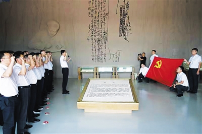 会后,农行大同市分行组织全体党员前往大泉山红色教育基地参观学习。在大泉山水土保持科技示范园内,大家面对党旗,举起右拳,重温入党誓词。洪亮的宣誓声表达出党员们“践行誓言、开创未来”的决心。