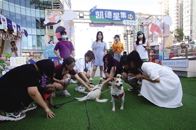 近日,在平城区永泰南路的凯德星集夜市,一处宠物领养摊点吸引着路人围观。