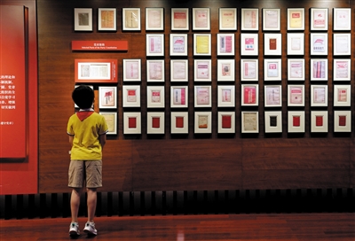 7月19日,一名小学生在中共二大会址纪念馆党章专题展厅内参观。
