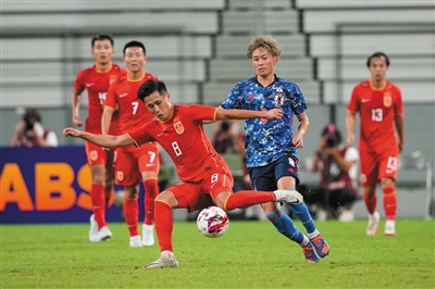7月24日,在日本爱知县丰田市举行的2022东亚杯男子足球比赛中,中国国家男子足球选拔队以0∶0战平日本队。