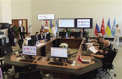 土耳其、俄罗斯、乌克兰和联合国代表27日在土耳其最大城市伊斯坦布尔的土耳其国防大学举行黑海粮食外运联合协调中心正式运行仪式。