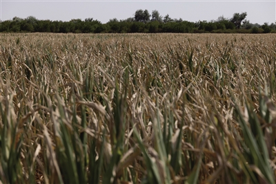 这是7月27日在匈牙利塞格德附近拍摄的遭受旱灾的玉米田。