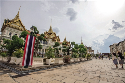 7月31日,游客在泰国曼谷大王宫景区游览。