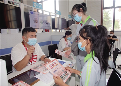 招聘会现场,市就业和人才服务中心积极推动“企业行校园行”活动,与大同第二高级职业中学校100余名毕业班学生开展精准对接,还有不少求职者在招聘活动开始前便来到现场,在职业指导台、各企业招聘窗口前咨询、求职。企业招聘人员热情地向广大求职者介绍我市大数据服务产业的未来发展前景、入职后的薪资待遇、岗位需求等信息。二职中学生翟皓楠说,过去对大数据服务产业认识比较模糊,现场咨询了解到,我市目前正在大力发展大数据产业,可供选择的岗位比较多,发展前景可观,他有了几家中意的企业,已做了求职登记。