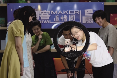 福建省福安市返乡创业大学生林恩辉(右二)在创客直播间向当地青年传授直播技巧(8月10日摄)。