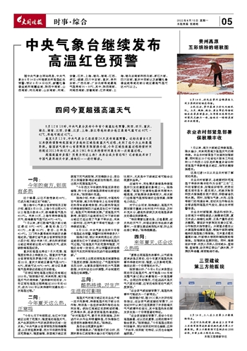 中央气象台继续发布 高温红色预警