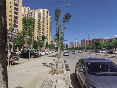 就此,记者联系了平城区园林绿化中心水泊寺绿化队,工作人员表示会尽快前去现场查看并处理。15日上午,记者再次来到事发地点进行走访时看到,路边倾斜的两棵行道树已经扶正。不仅如此,园林工人还对沿路的树木进行了修剪,对部分死树枯枝进行清理。