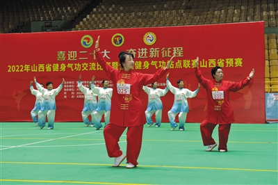 本报讯 (记者 陈杰) 招式有章法,身姿显风流。18日上午,2022年山西省健身气功交流比赛暨全国健身气功站点联赛山西省预赛在市体育馆开赛,来自全省14支代表队的参赛者在同竞技,以优美姿态展现了健身气功的独特魅力。