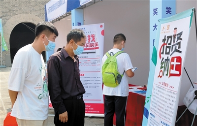 本报讯 (记者 张彩峰) 昨日,古城南城墙关城内人头攒动,“微笑大同 数字就业”云冈数字经济专场招聘会在这里举行,为用人企业和求职人员牵线搭桥,助力我市数字经济发展。