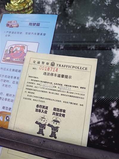 民警表示,遇到违停车辆,他们会张贴“违法停车温馨提示单”,并拍照取证,在拍照的同时给车主发一条提示短信,提醒车主尽快挪车。
