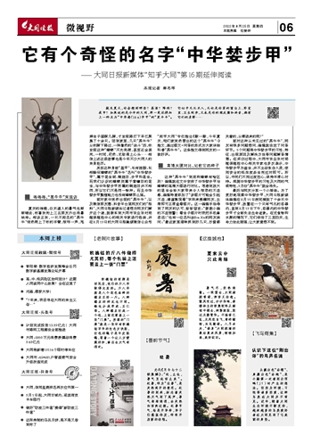 提及夏天,你会想到哪些?高温?降雨?夜市?如果说的是今年的大同,那一定还得加上一种名为“中华婪(lán)步甲”的“黑牛牛”。它似乎无孔不入,无论是你家的窗台上、卧室里、卫生间旁,又或是你的朋友圈和抖音,都有它们的身影……