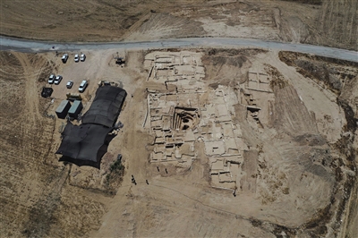 ◀ 这是8月23日拍摄的以色列南部内盖夫沙漠地区发掘出的古代“豪宅”遗址(无人机照片)。